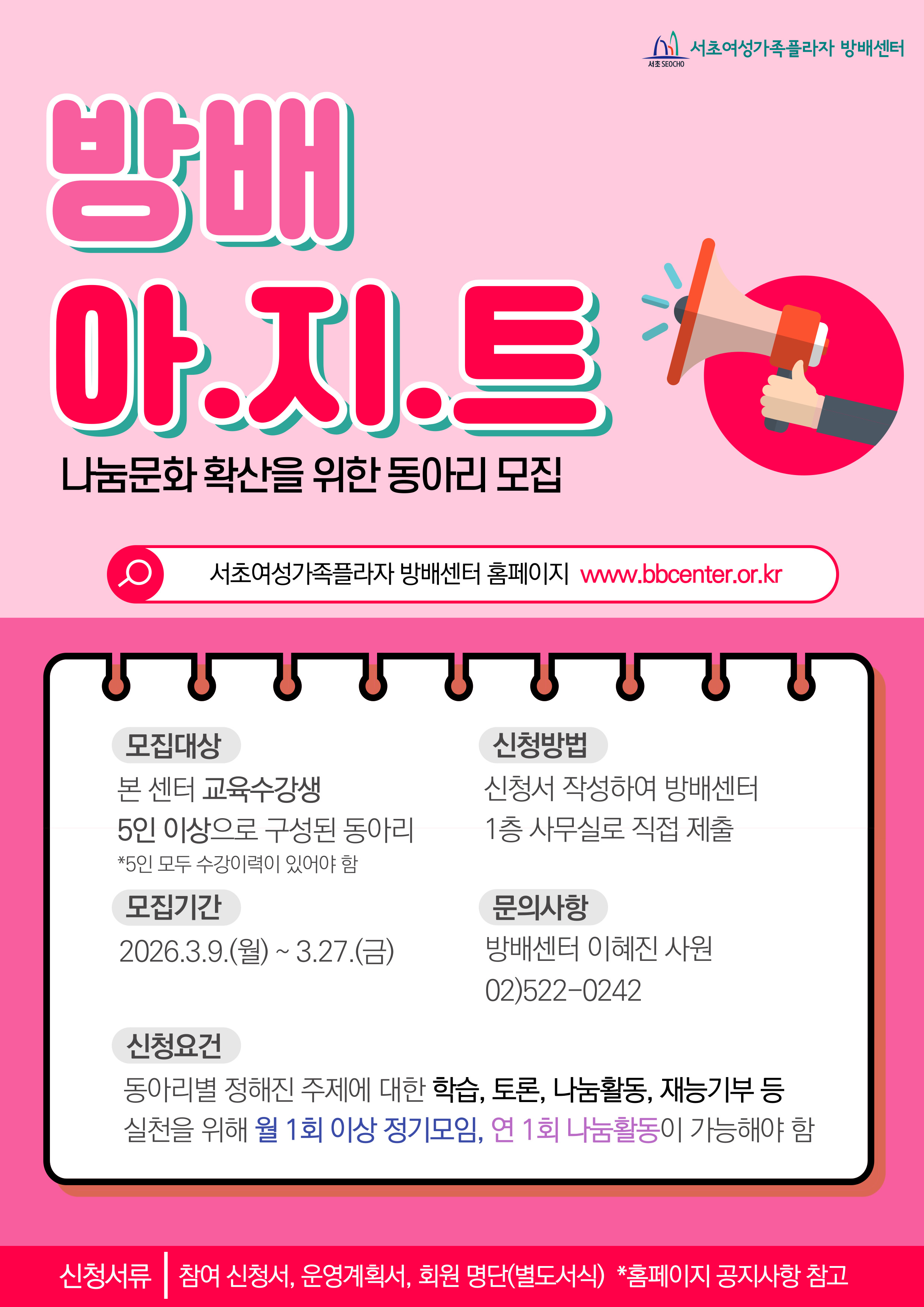 나눔문화 확산에 동참하실 방배 아.지.트(동아리)를 모집합니다.