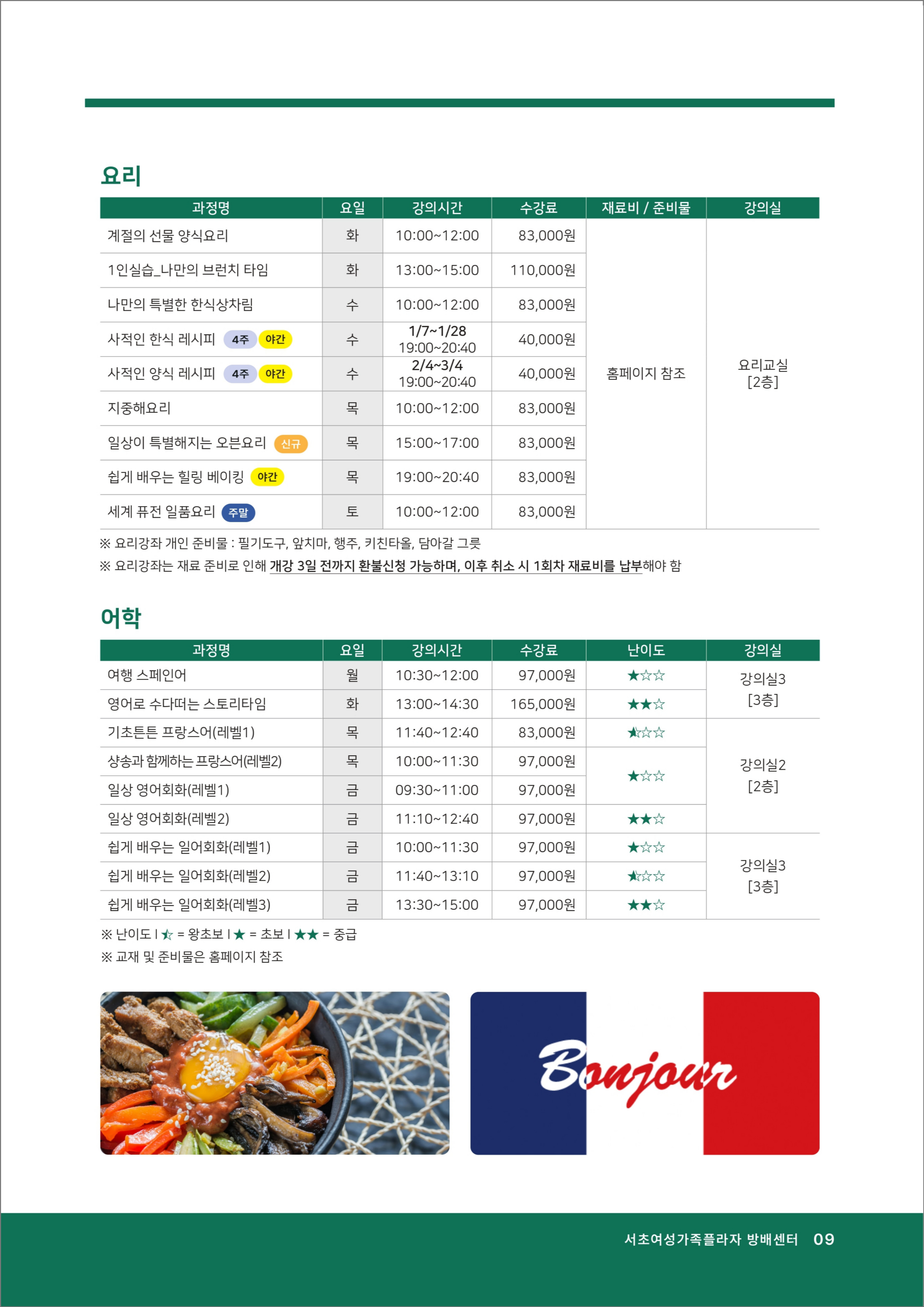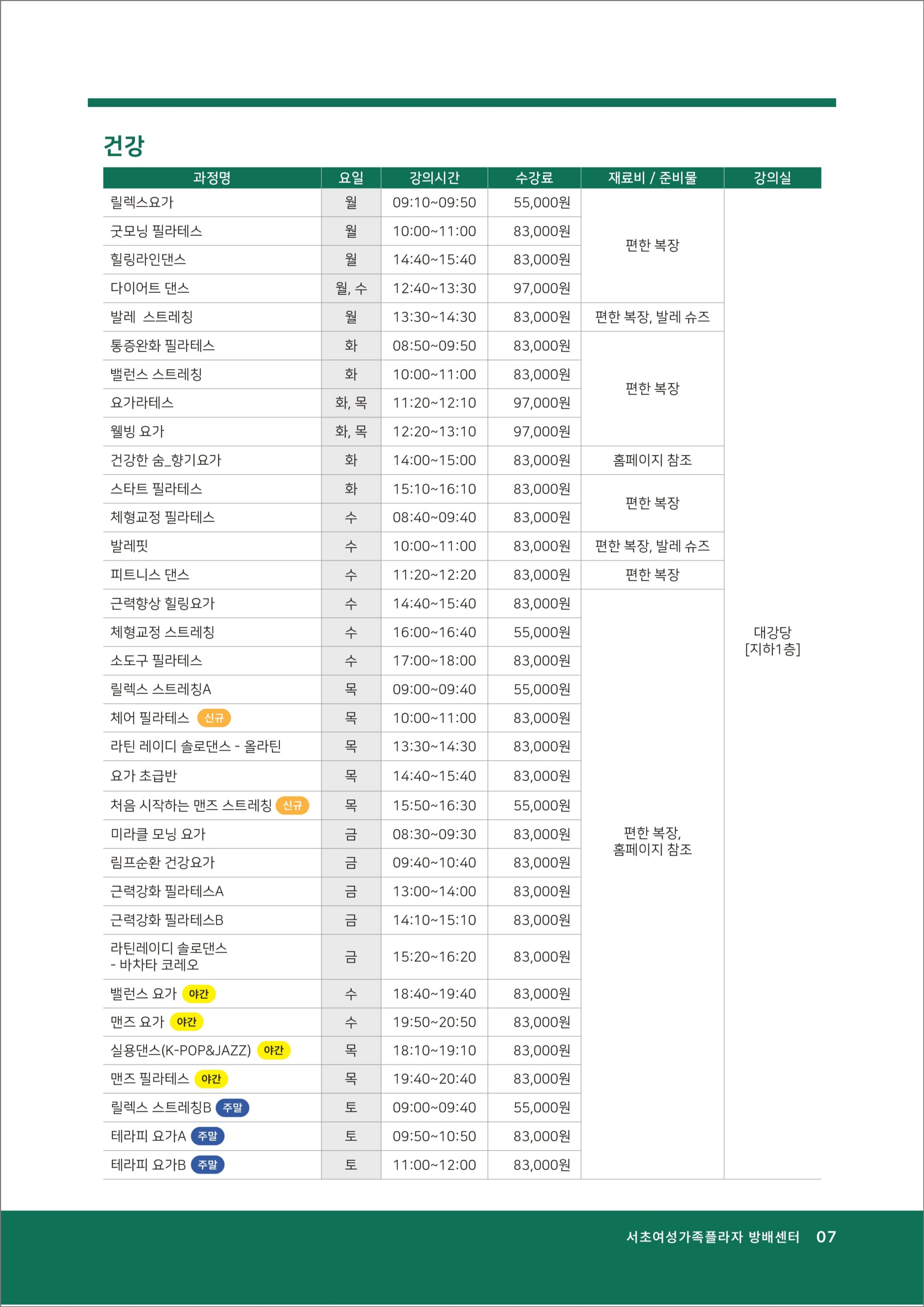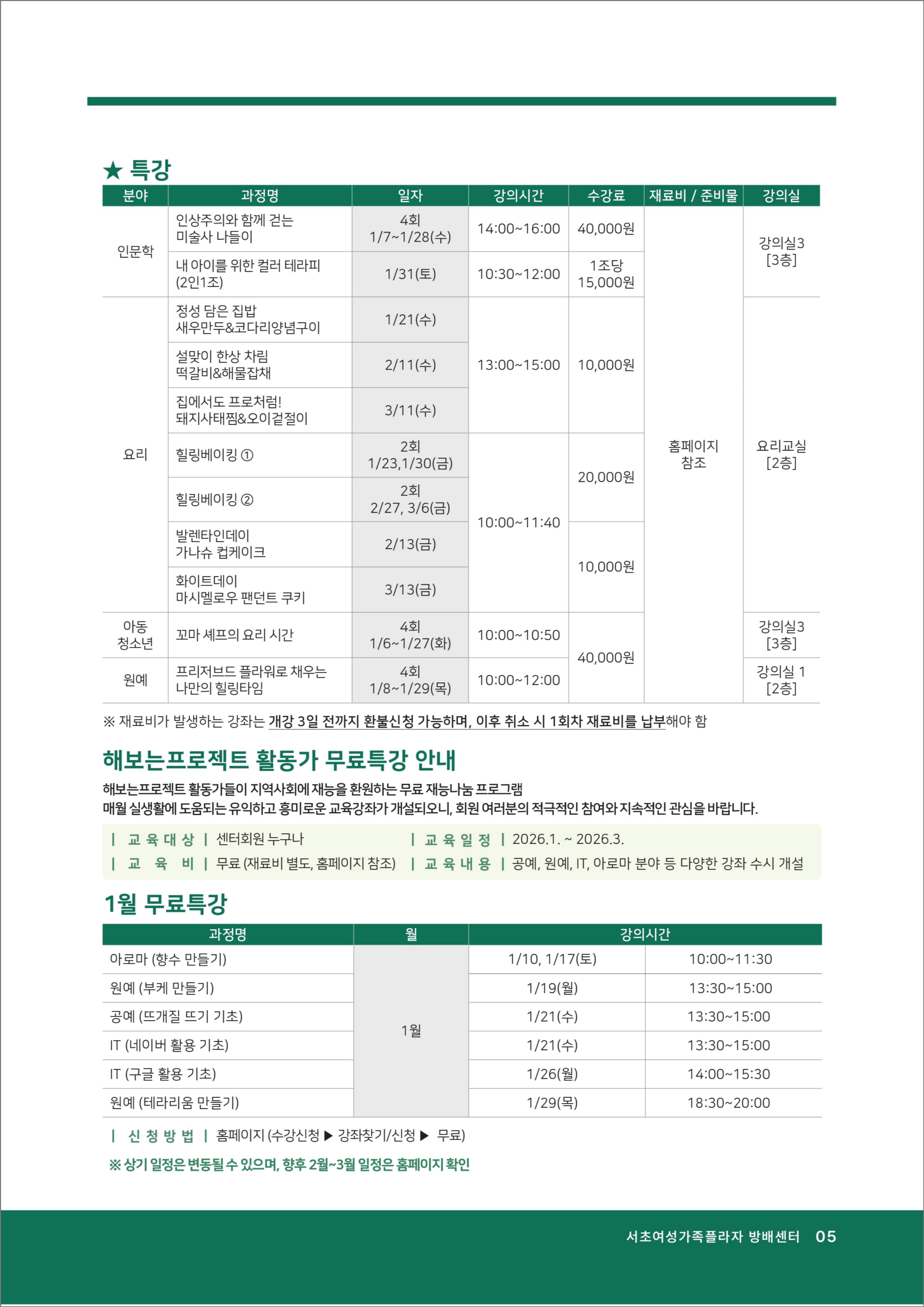 2) 준비물 : 신분증(서초구민할인강좌 신청 시/ 해당 강좌는 현장접수만 가능)